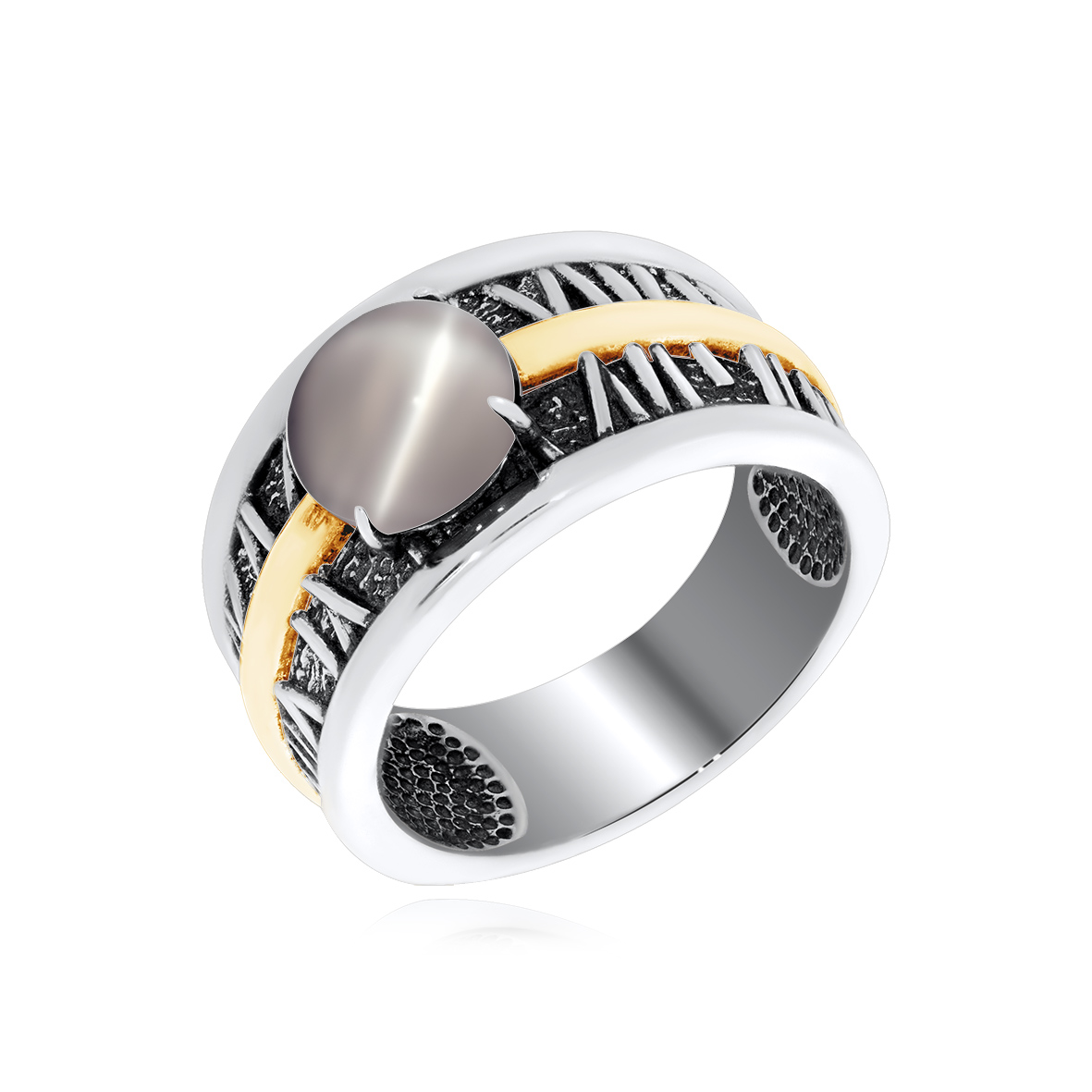 Кольцо для женщин из серебра 925 пробы с имитацией кошачьего глаза из коллекции Игра фактур артикул 1317261754-21 от компании KRASNOE