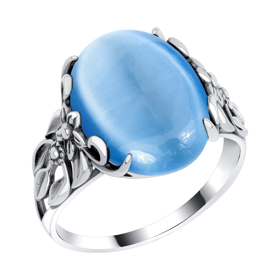 Кольцо для женщин из серебра 925 пробы с имитацией кошачьего глаза из коллекции Flowers (рабочее название) артикул 1310265737-70 от компании KRASNOE