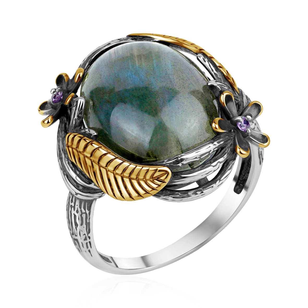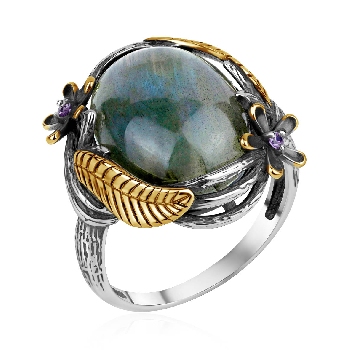 Кольцо для женщин из серебра 925 пробы с лабрадоритом,фианитами из коллекции Flowers (рабочее название) артикул 1317Л05330 от компании KRASNOE
