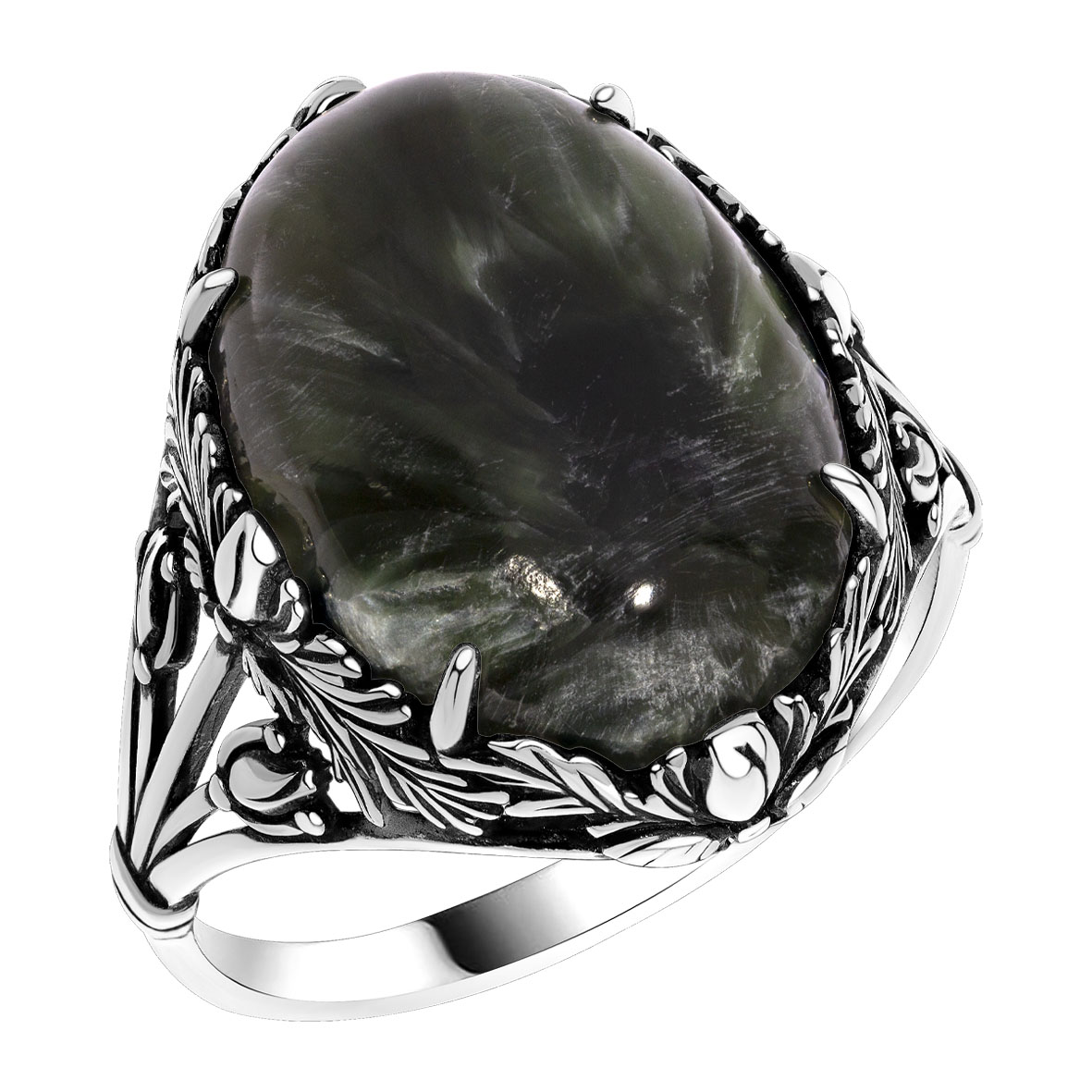 Кольцо для женщин из серебра 925 пробы с серафинитом из коллекции Flowers (рабочее название) артикул 1310925150 от компании KRASNOE