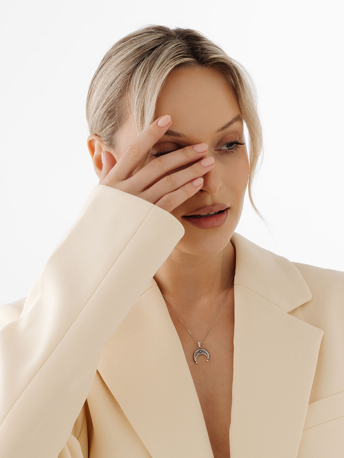 Подвеска лунница из серебра 925 пробы. Серебряный оберег "Лунница". Достаточно взглянуть на амулет "Лунница" и сразу становится понятно откуда пошло название. Оберег имеет форму серпа и напоминает луну. Полумесяц - символ женского начала Древней Руси. Оберег новой Луны дарит женщинам свою позитивную энергетику. Украшение - оберег. Украшение амулет. Подарок на Новый год. Подарок на День рождения. Подарок на 8 марта.Серебряная подвеска создана для активной жизни. Благодаря лаконичности декоративных решений, изделие можно сочетать с разными образами. KRASNOE нежные и трендовые украшения из серебра 925 собственной разработки, дизайна и производства для красоты твоих будней! В коллекцию ювелирного бренда KRASNOE входят кольца на фалангу, колье - чокеры и галстуки, джекеты.