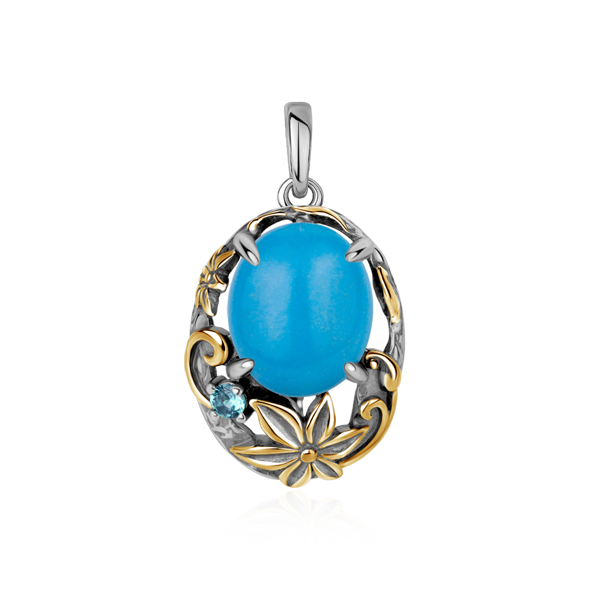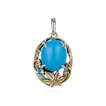 Подвеска для женщин из серебра 925 пробы с бирюзой,фианитом из коллекции Flowers (рабочее название) артикул 3317Б25328 от компании KRASNOE