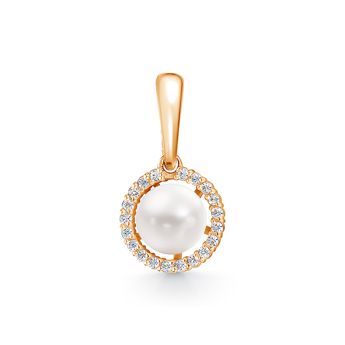 Подвеска для женщин из золота 585 пробы с жемчуг , фианитыом артикул Z3-10483