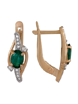 Серьги для женщин из золота 585 пробы с бриллиант изумрудом артикул 1910212498 от компании Алмаз-Холдинг