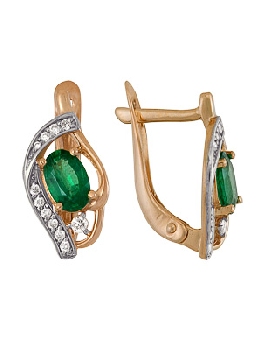 Серьги для женщин из золота 585 пробы с изумрудами,бриллиантами артикул 1910212500 от компании Алмаз-Холдинг