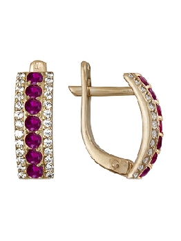 Серьги для женщин из золота 585 пробы с рубинами,бриллиантами артикул 1920012072 от компании Алмаз-Холдинг