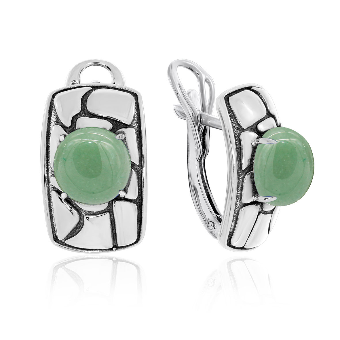 Серьги для женщин из серебра 925 пробы с нефритами из коллекции Игра фактур артикул 2310351753 от компании KRASNOE