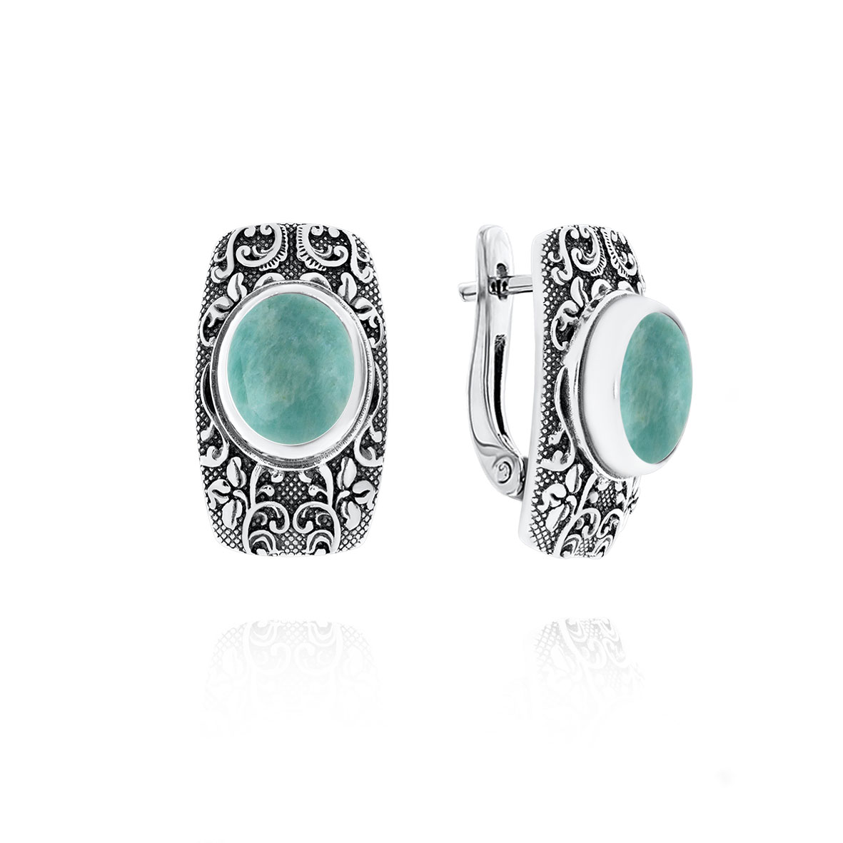 Серьги для женщин из серебра 925 пробы с амазонитами из коллекции Boyarynia артикул 2310371370 от компании KRASNOE
