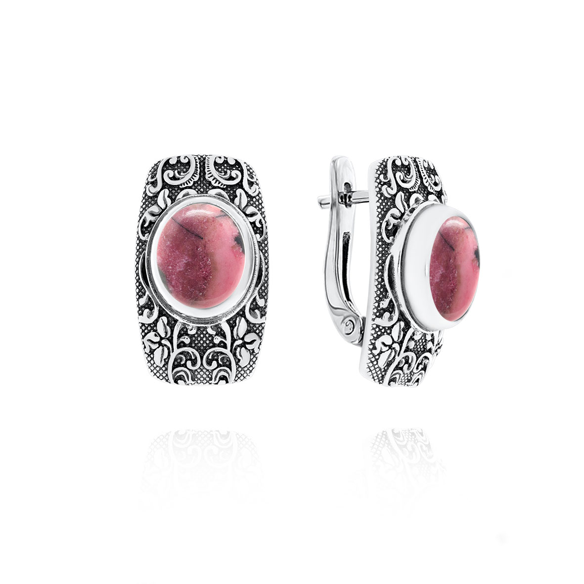 Серьги для женщин из серебра 925 пробы с родонитами из коллекции Boyarynia артикул 2310451370 от компании KRASNOE