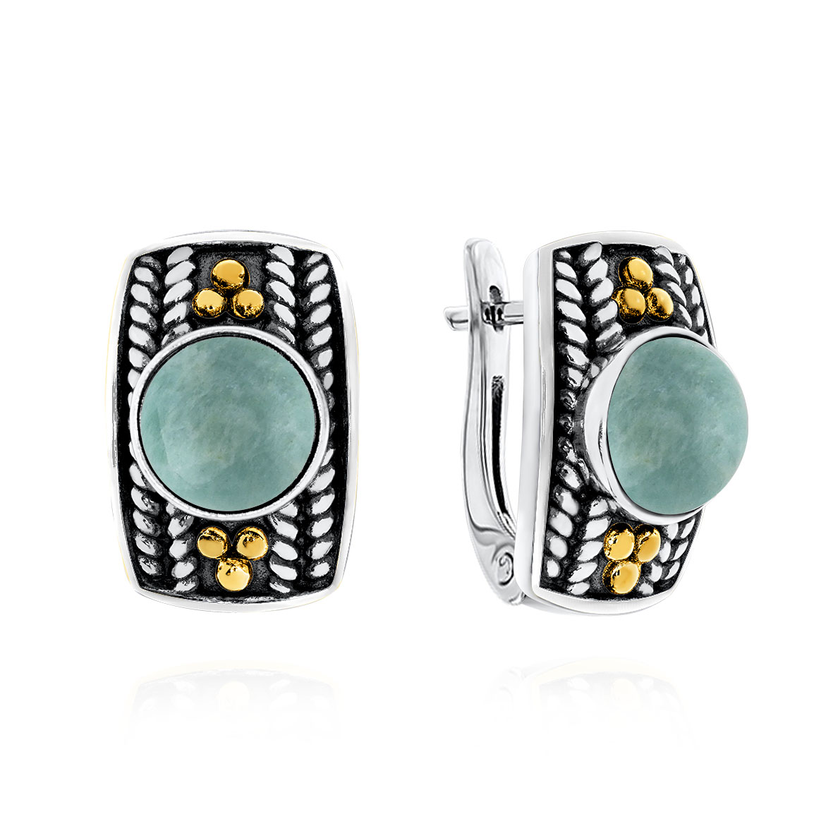 Серьги для женщин из серебра 925 пробы с амазонитами из коллекции Игра фактур артикул 2317371750 от компании KRASNOE