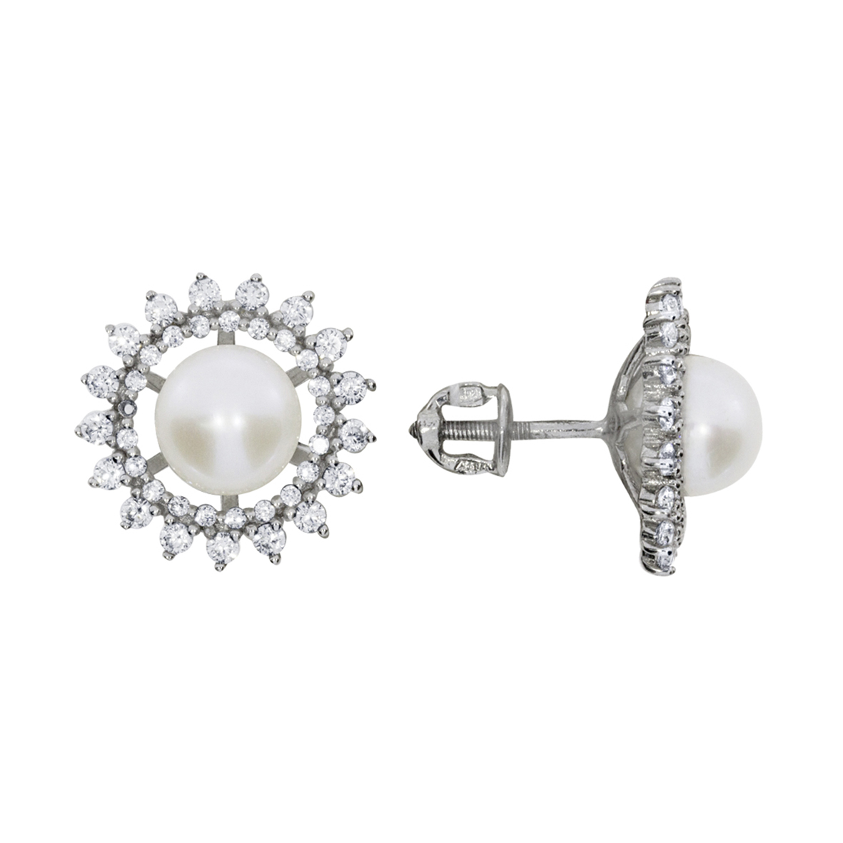 Пусеты для женщин из серебра 925 пробы с жемчугами,фианитами из коллекции Афродита артикул 2340053517 от компании KRASNOE