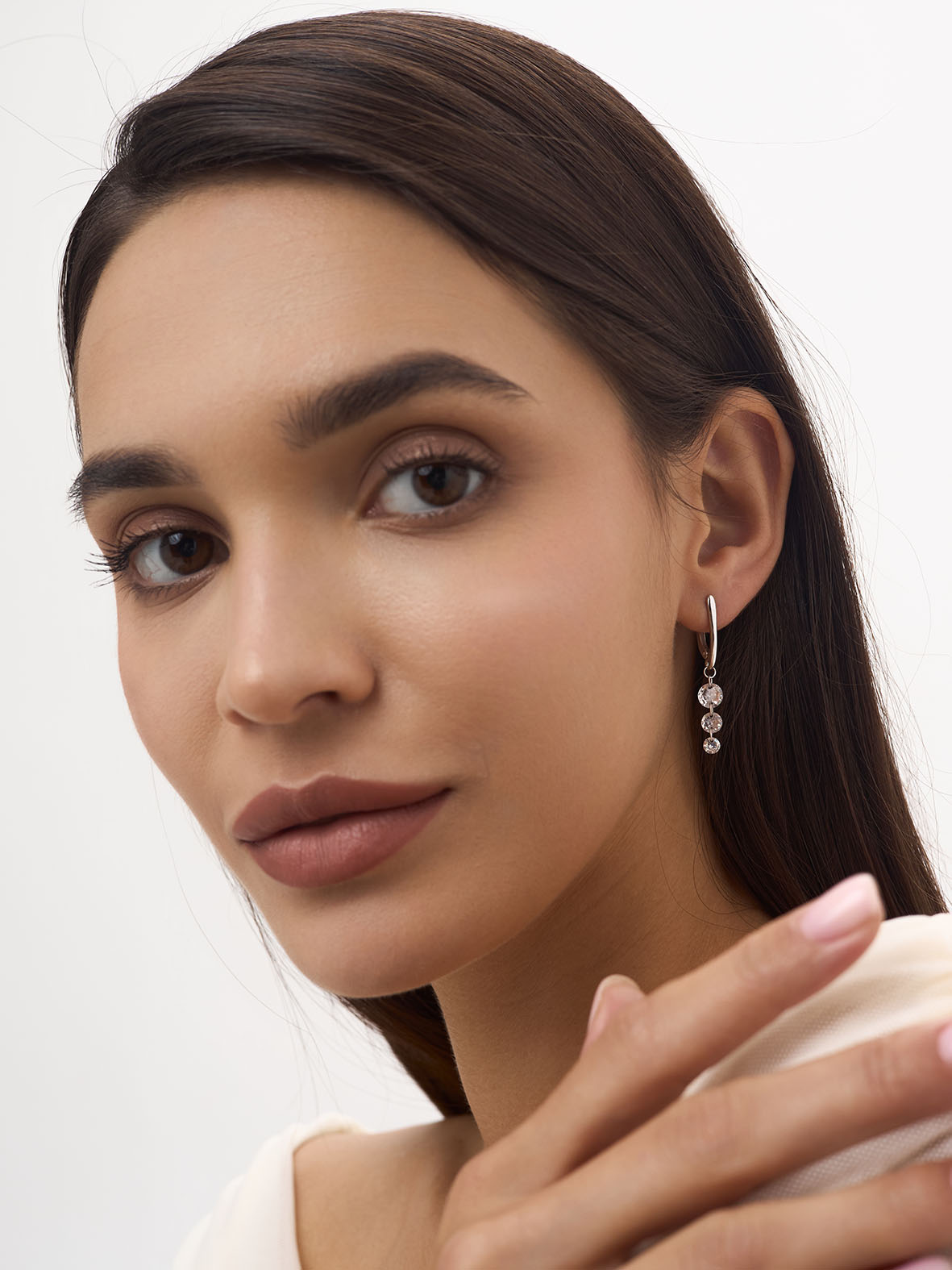 Серьги для женщин из серебра 925 пробы с фианитами из коллекции Невесомость артикул 2340200617 от компании KRASNOE
