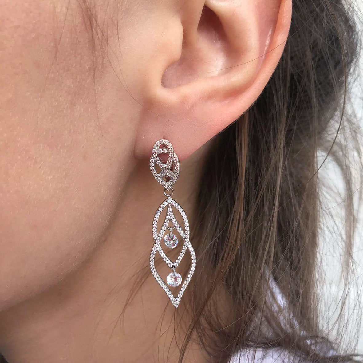 Серьги для женщин из серебра 925 пробы с фианитами из коллекции Маэстозо артикул 2340200782л от компании KRASNOE