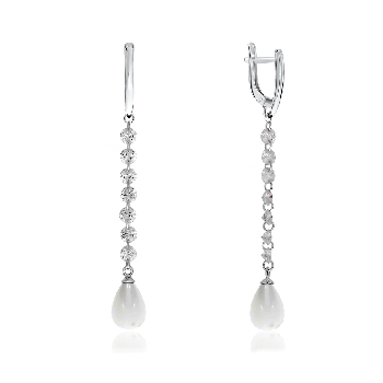 Серьги для женщин из серебра 925 пробы с жемчугами,фианитами из коллекции Невесомость артикул 2340240613-1 от компании KRASNOE