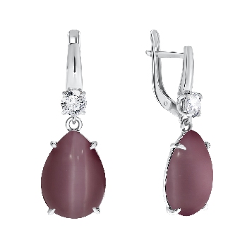 Серьги для женщин из серебра 925 пробы с фианитами,кошачий глазами из коллекции Уральские самоцветы артикул 2340260502-33 от компании KRASNOE