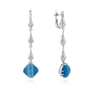 Серьги для женщин из серебра 925 пробы с кошачий глазами,фианитами из коллекции Shine артикул 2340261203-70 от компании KRASNOE