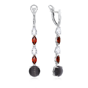 Серьги для женщин из серебра 925 пробы с кошачий глазами,гранатами,,фианитами из коллекции Shine артикул 2340261205-1-21 от компании KRASNOE