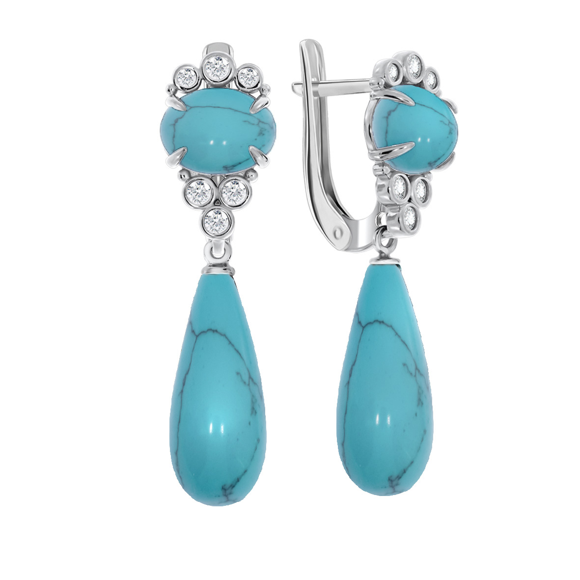 Серьги для женщин из серебра 925 пробы с бирюзой,фианитами из коллекции Уральские самоцветы артикул 2340310972л от компании KRASNOE