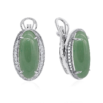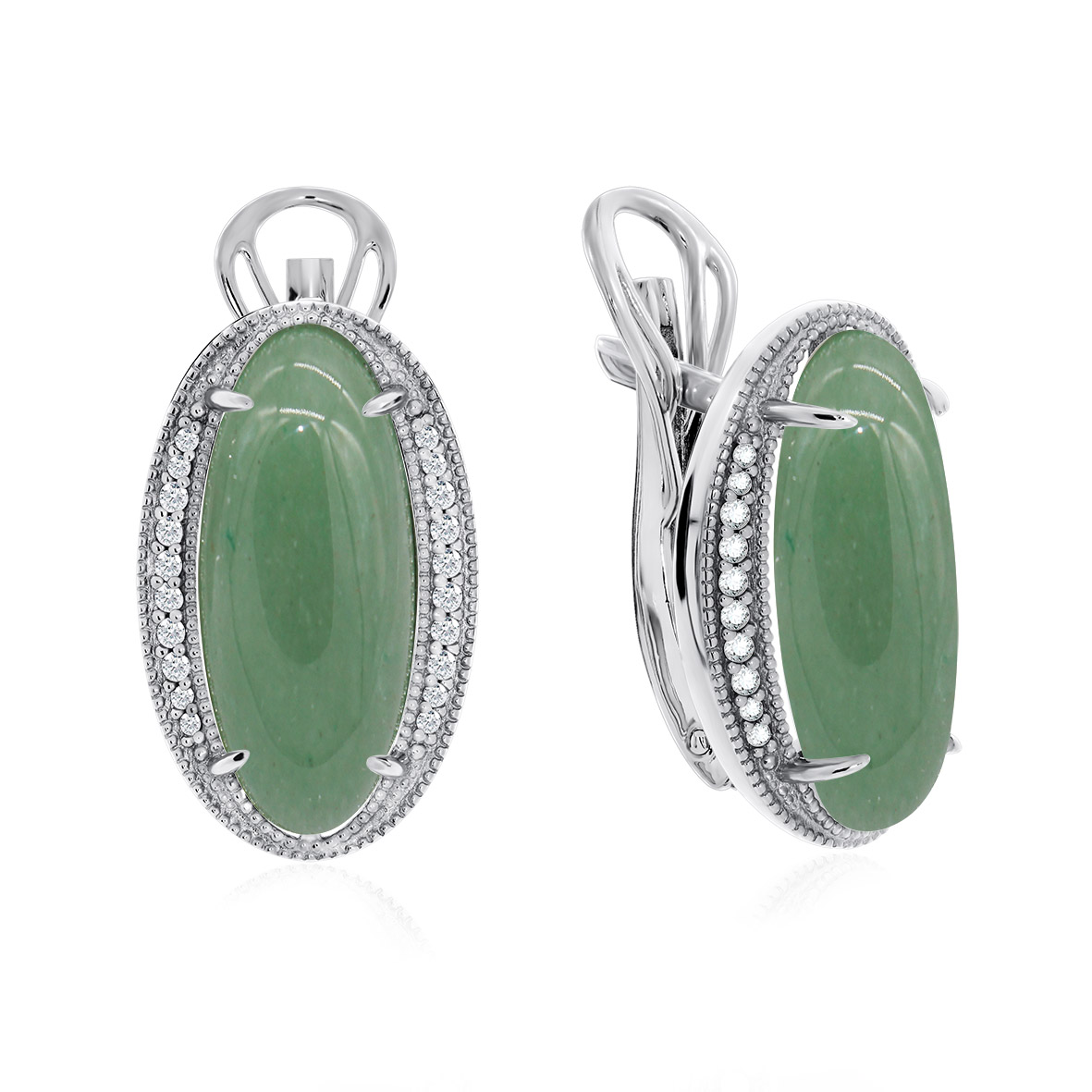 Серьги для женщин из серебра 925 пробы с нефритами,фианитами из коллекции Династия артикул 2340350938л от компании KRASNOE