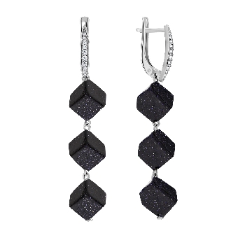 Серьги для женщин из серебра 925 пробы с синтетическими авантюринами,фианитами из коллекции Грани артикул 2340360323л от компании KRASNOE