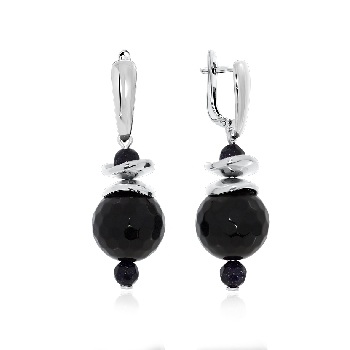 Серьги для женщин из серебра 925 пробы с ониксами,синтетическими авантюринами из коллекции Bubbles артикул 2340431231-1 от компании KRASNOE