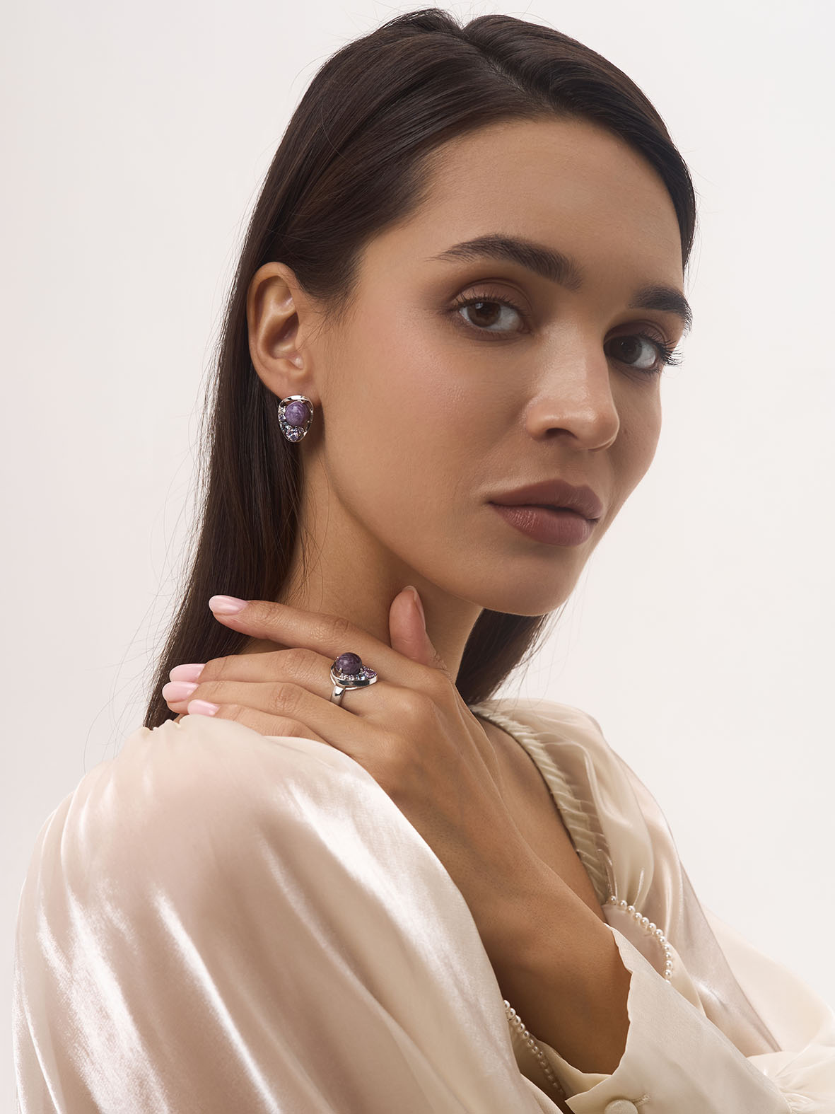 Серьги для женщин из серебра 925 пробы с ситаллами,чароитами,,фианитами из коллекции Сладкая история артикул 2340461170-84 от компании KRASNOE