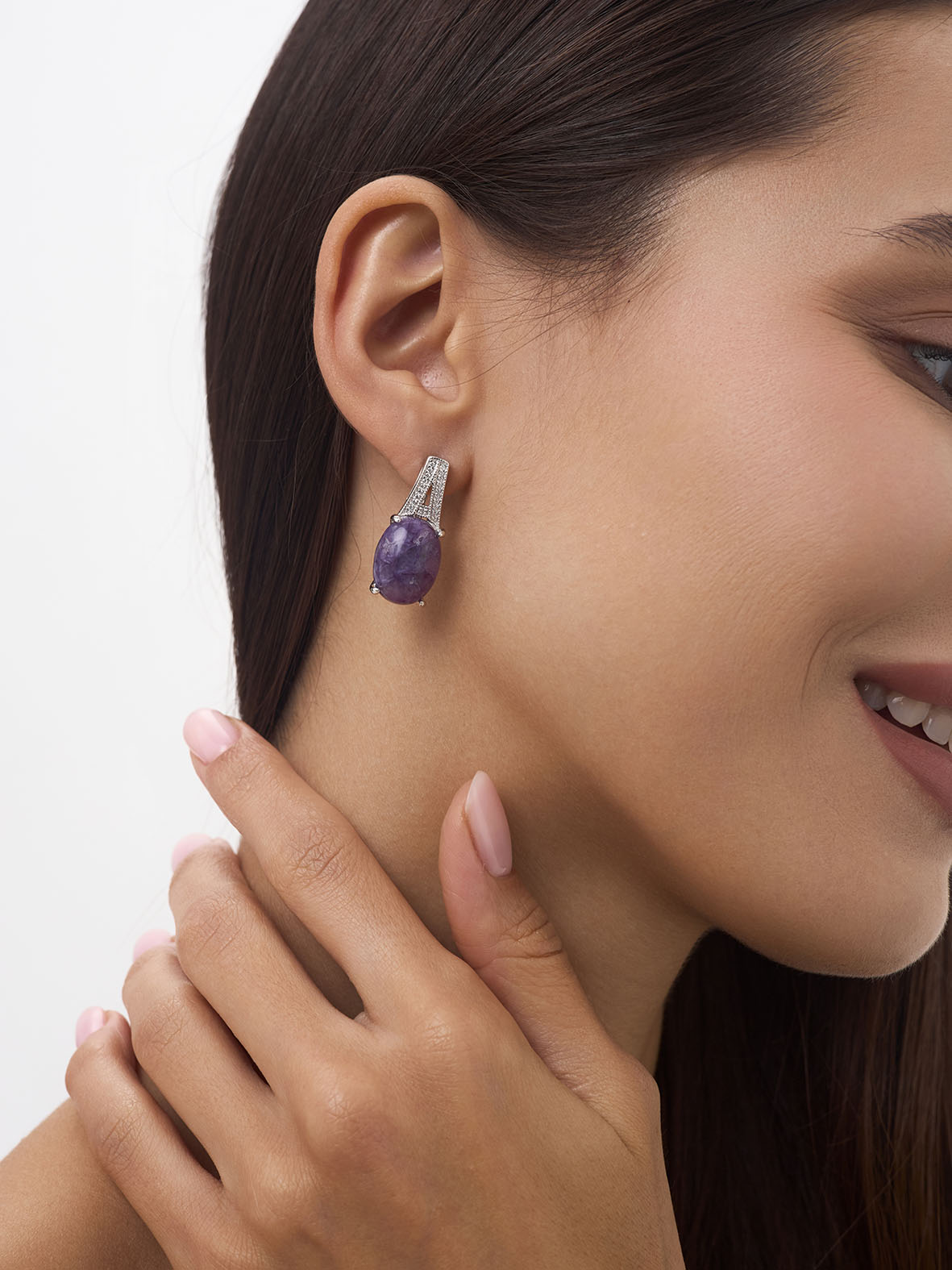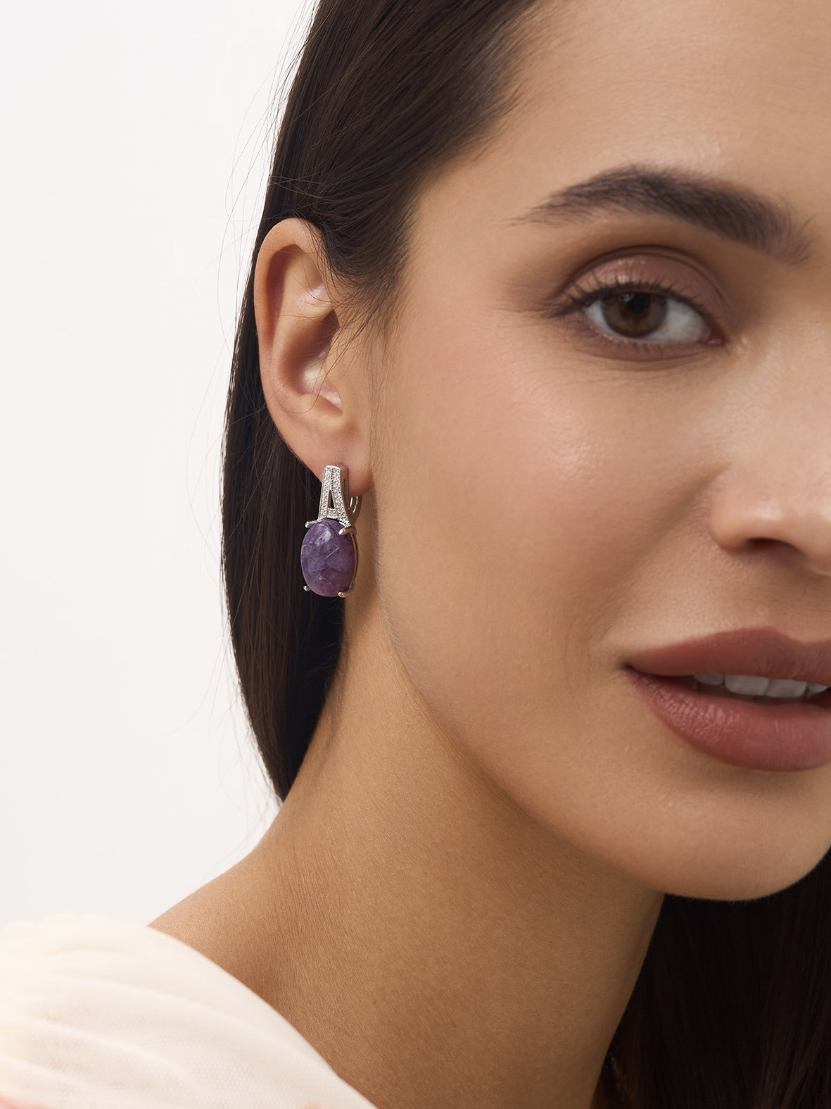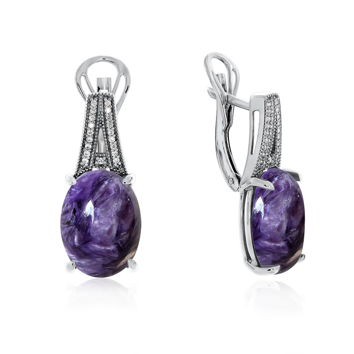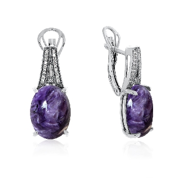 Серьги для женщин из серебра 925 пробы с чароитами,фианитами из коллекции Уральские самоцветы артикул 2340463537л от компании KRASNOE