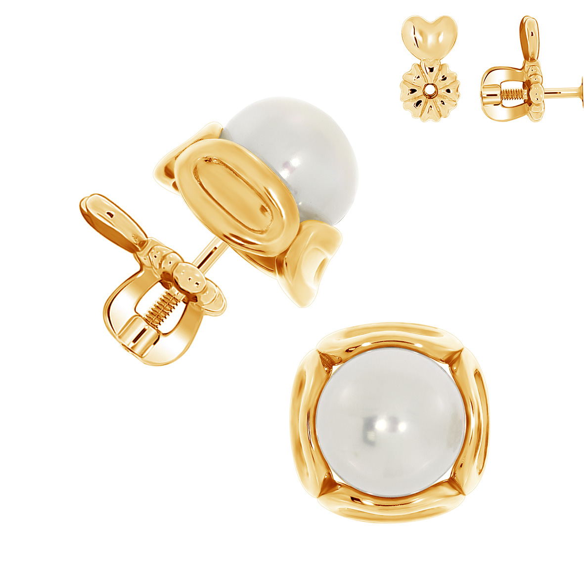 Пусеты для женщин из серебра 925 пробы с жемчугами из коллекции Lady артикул П320050836 от компании KRASNOE