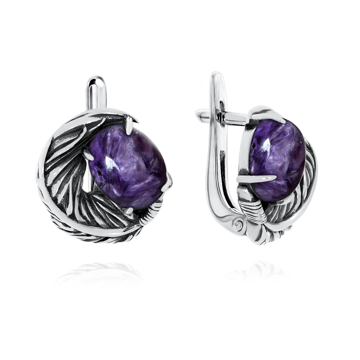 Серьги для женщин из серебра 925 пробы с чароитами из коллекции Жар-птица артикул 2310461601 от компании KRASNOE