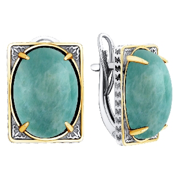 Серьги для женщин из серебра 925 пробы с амазонитами из коллекции Династия артикул 2317375797 от компании KRASNOE