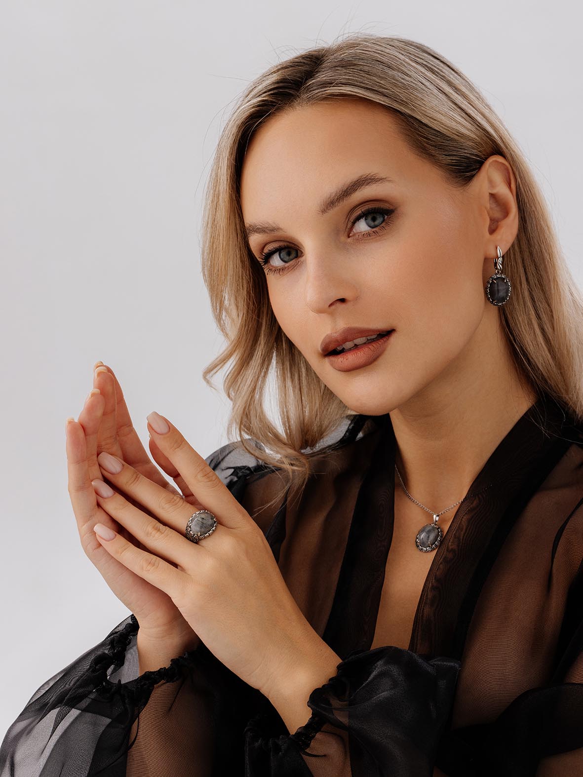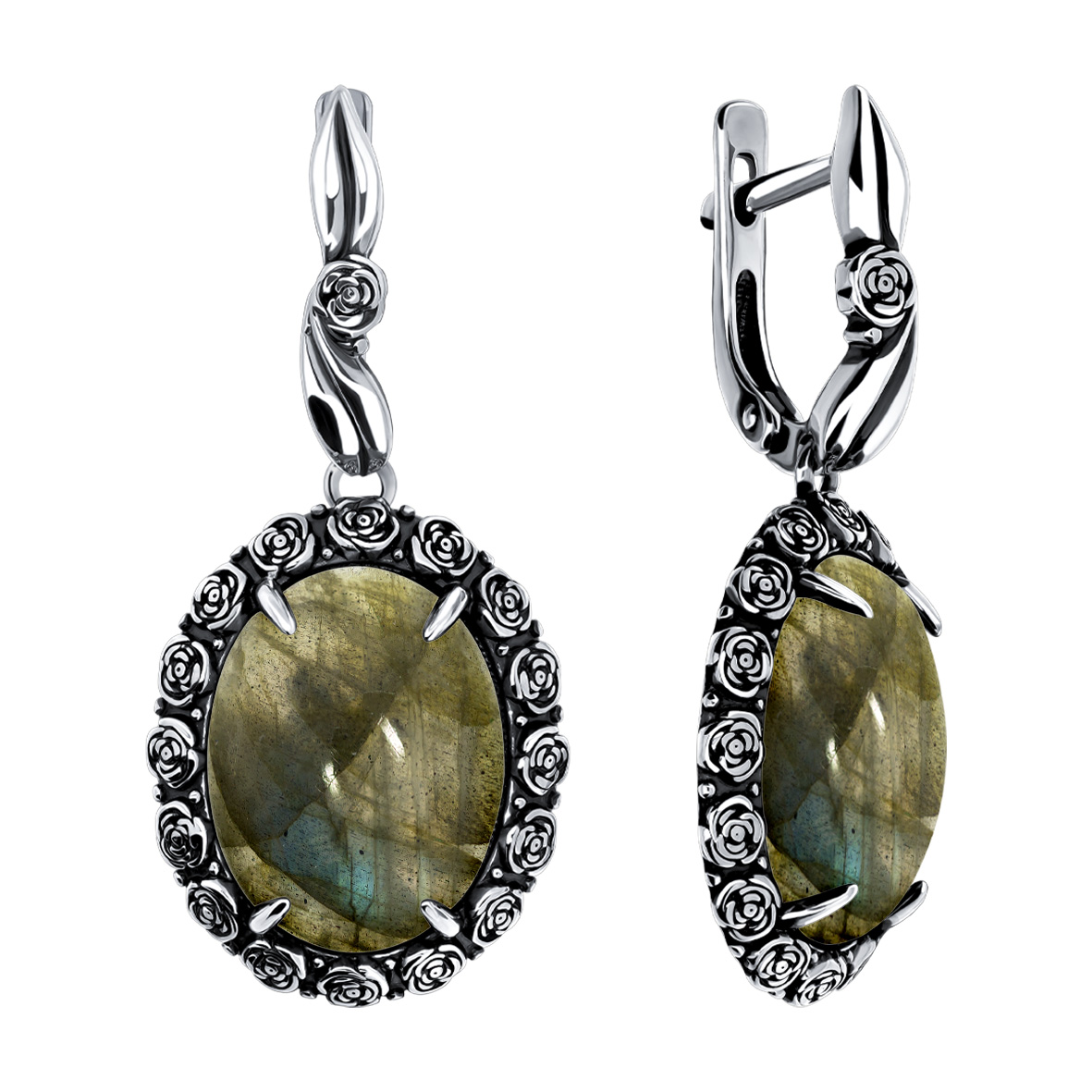 Серьги для женщин из серебра 925 пробы с лабрадоритами из коллекции Flowers (рабочее название) артикул 2310Л05173 от компании KRASNOE