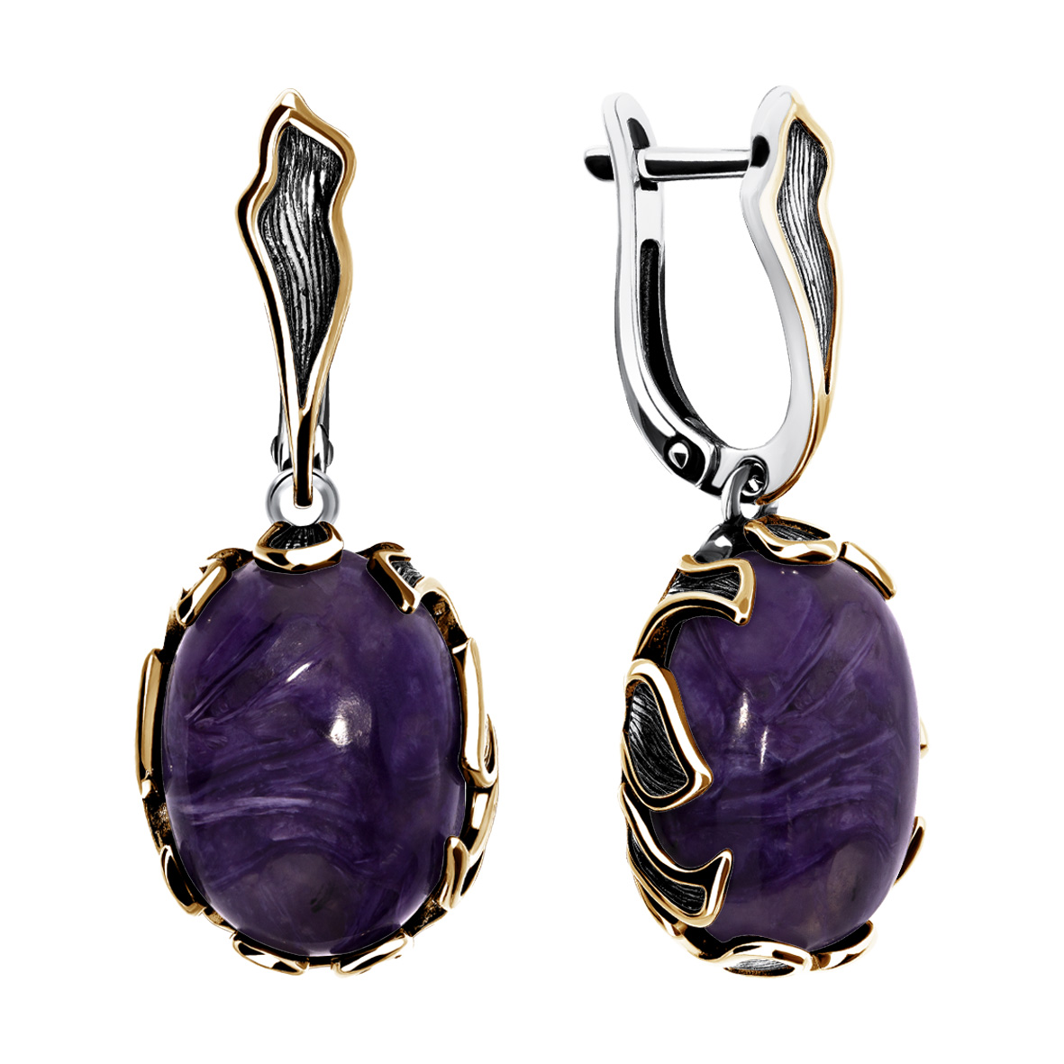 Серьги для женщин из серебра 925 пробы с чароитами из коллекции Комета (рабочее название) артикул 2317465170 от компании KRASNOE