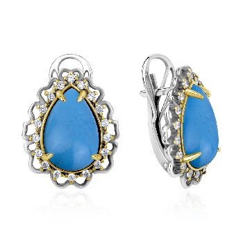 Серьги для женщин из серебра 925 пробы с бирюзой,фианитами артикул 2317Б25325л от компании KRASNOE