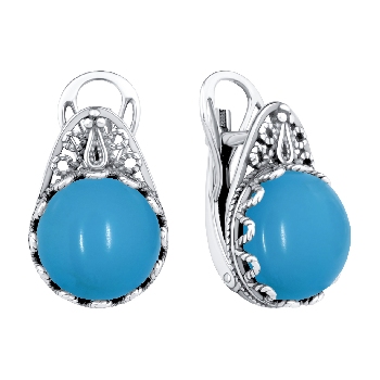 Серьги для женщин из серебра 925 пробы с бирюзой из коллекции Филигранная (рабочее название) артикул 2310Б25777 от компании KRASNOE