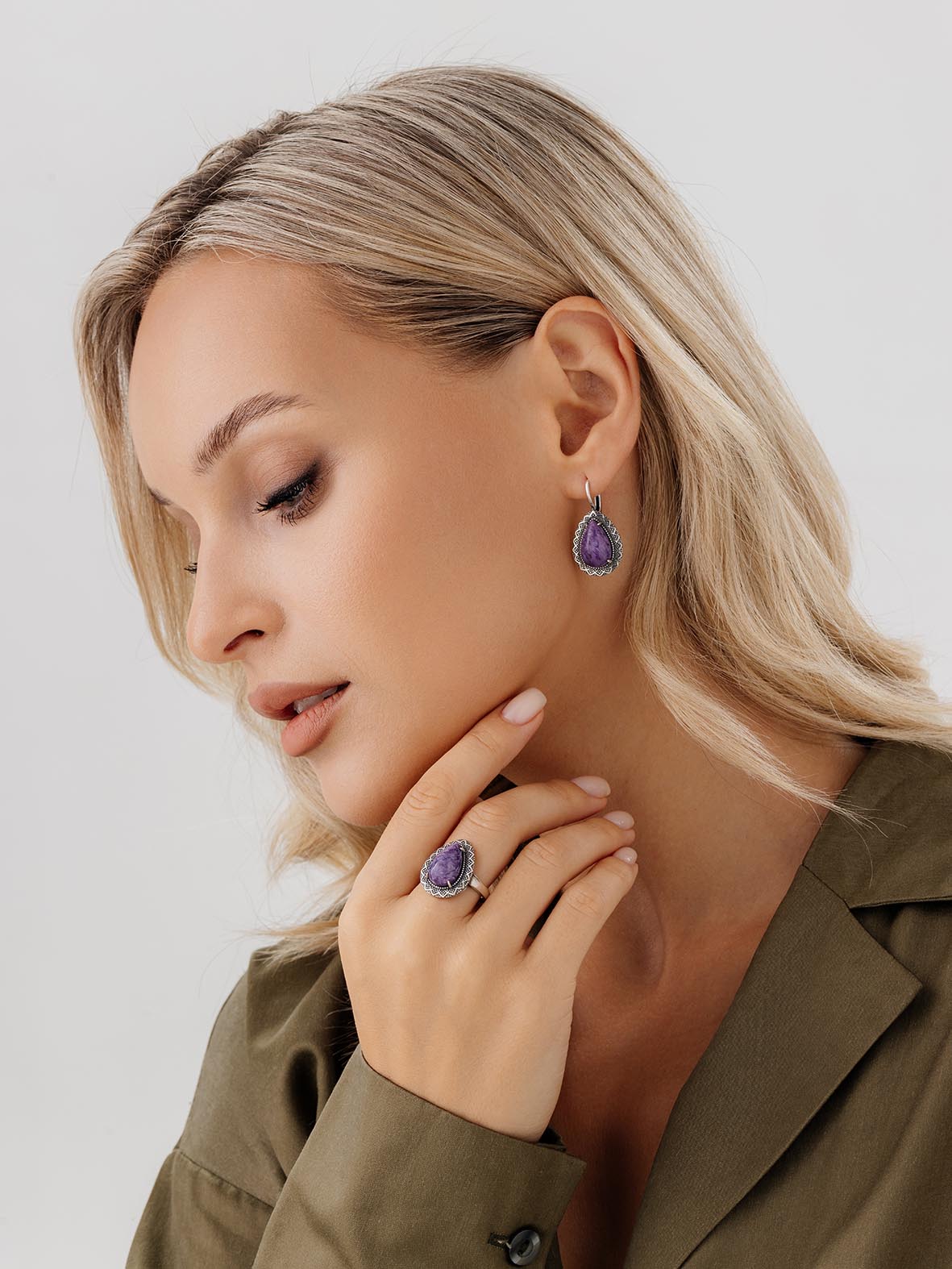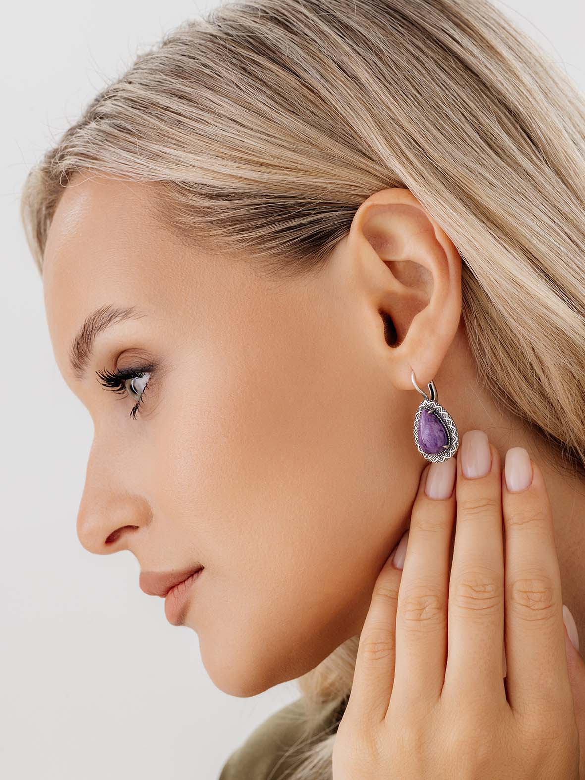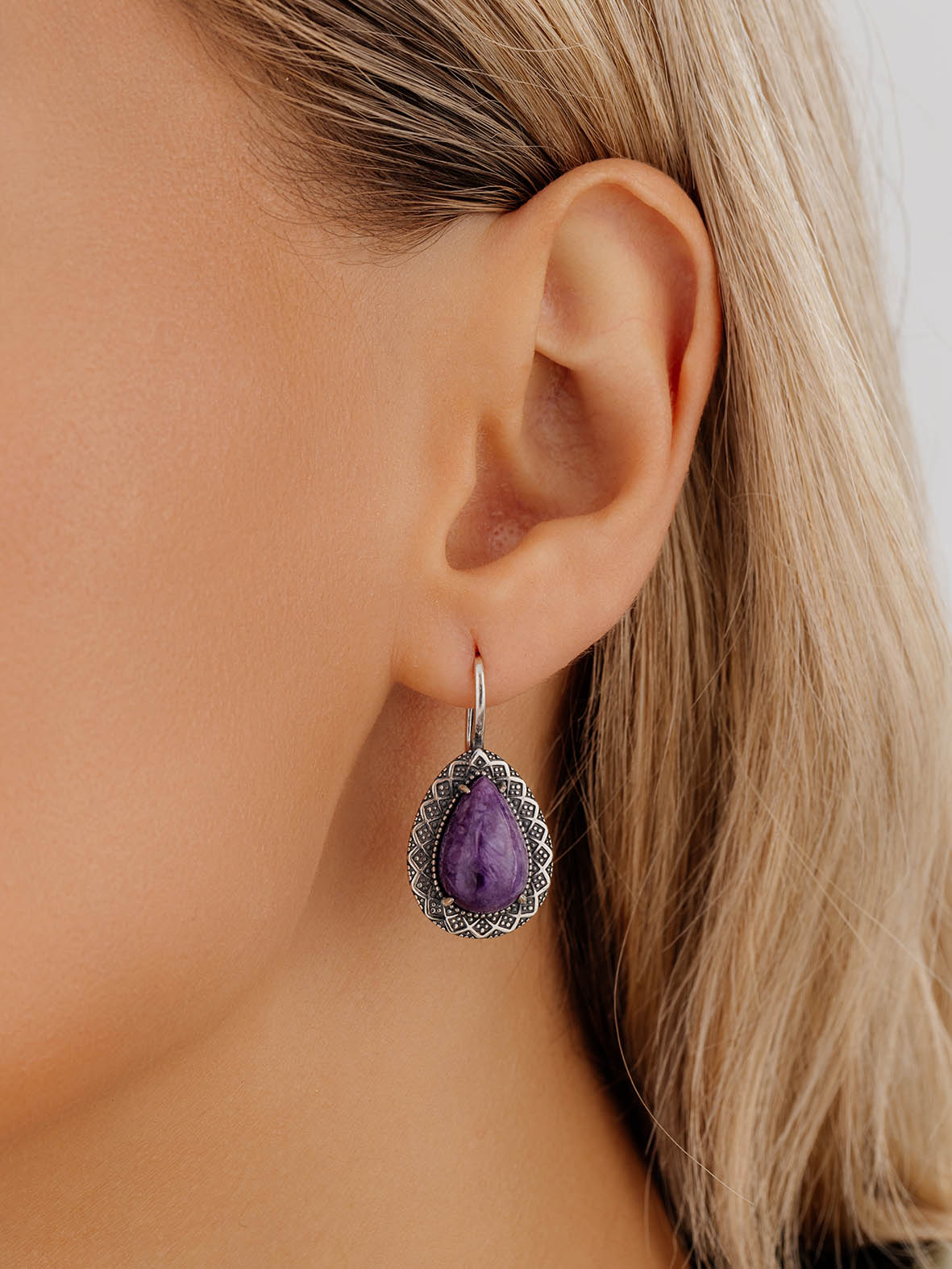 Серьги для женщин из серебра 925 пробы с чароитами из коллекции Уральские самоцветы артикул 2310465062 от компании KRASNOE