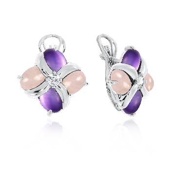 Серьги для женщин из серебра 925 пробы с фианитами,ситаллами,,наноаметистами из коллекции Сад камней артикул 2340882908-2 от компании KRASNOE
