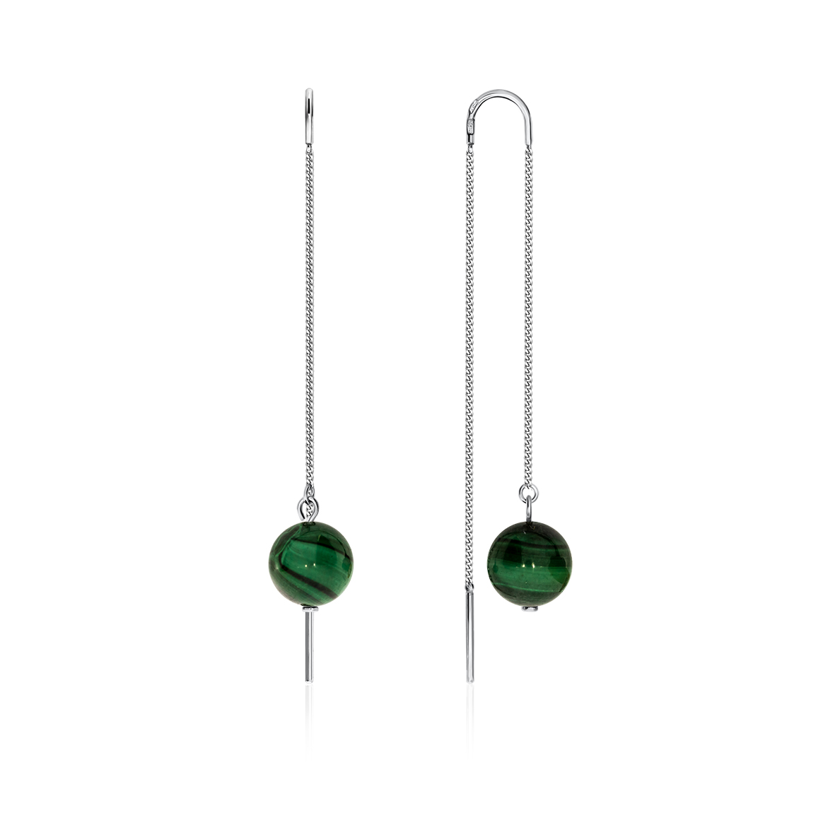 Серьги-продевки из серебра 925 пробы с натуральным малахитом. Тонкие, едва заметные, Итальянские цепи, словно лунные лучи, пронизывающие мочку уха, смотрятся оригинально, изящно подчеркивают изгибы шеи и подойдут к любому образу. Малахаит - камень, гармонии, спокойствия и равновесия, он дарит счастье хорошим и честным людям, которые в этом нуждаются. Минерал используют как оберег. Он помогает владельцу стать более уверенным и упорным, принимать осознанные решения, находить нестандартные подходы, сохранять остроту ума. При этом малахит дарит более оптимистический взгляд на жизнь. Выполнены из родированного серебра 925 пробы: защищены от потемнения и царапин, не вызывают аллергии и раздражения. В комплекте бархатный мешочек: используйте его для хранения или в качестве упаковки для подарка. Размер камня: малахит натуральный 10 мм.