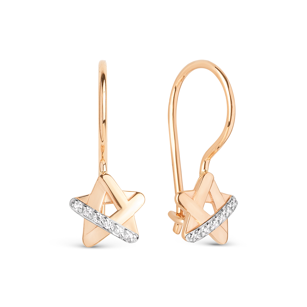 Серьги для детей из золота 585 пробы с фианитом артикул 022732-1102