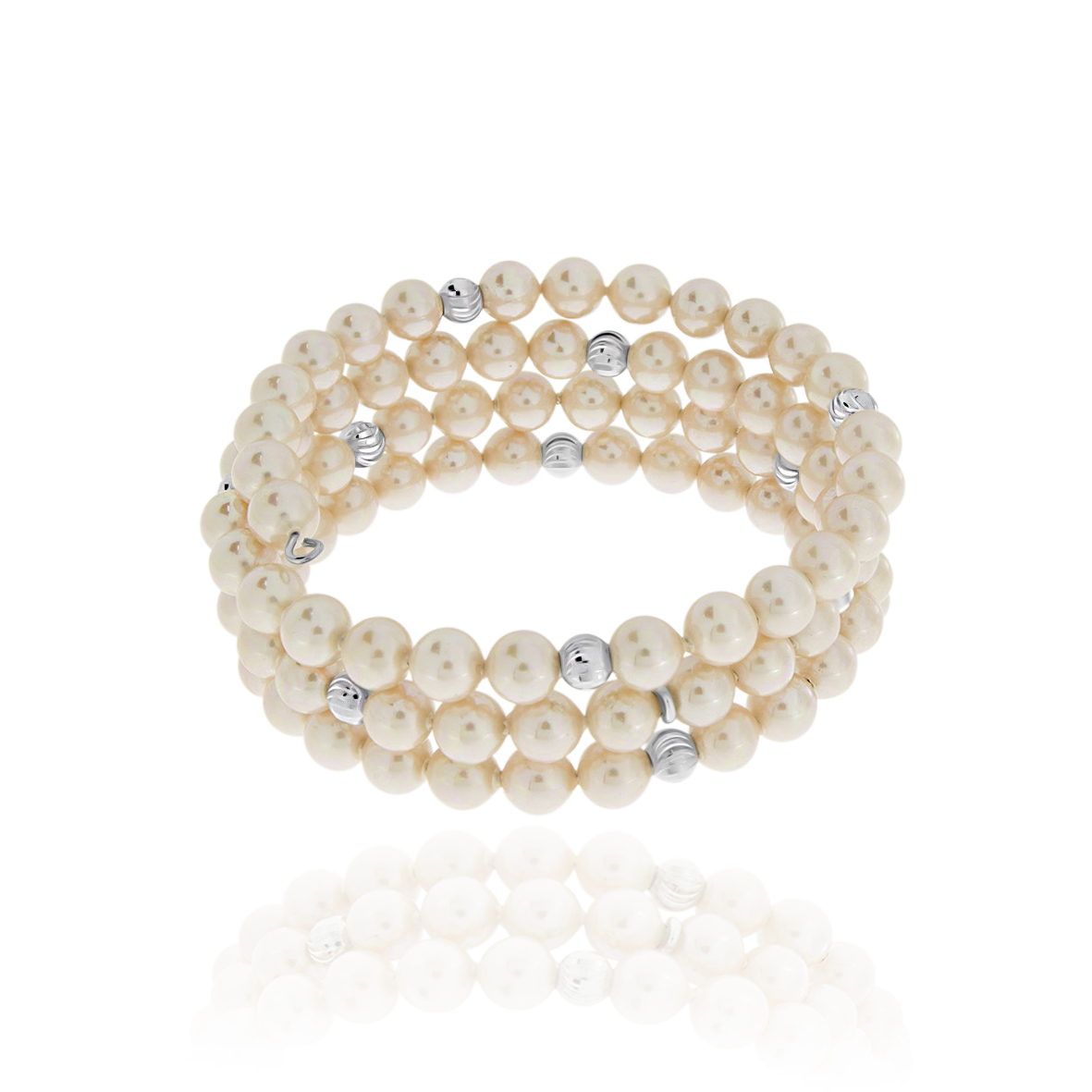 Браслет для женщин из серебра 925 пробы с проволока (с памятью)ом,жемчугами артикул 4300249421-30 от компании KRASNOE
