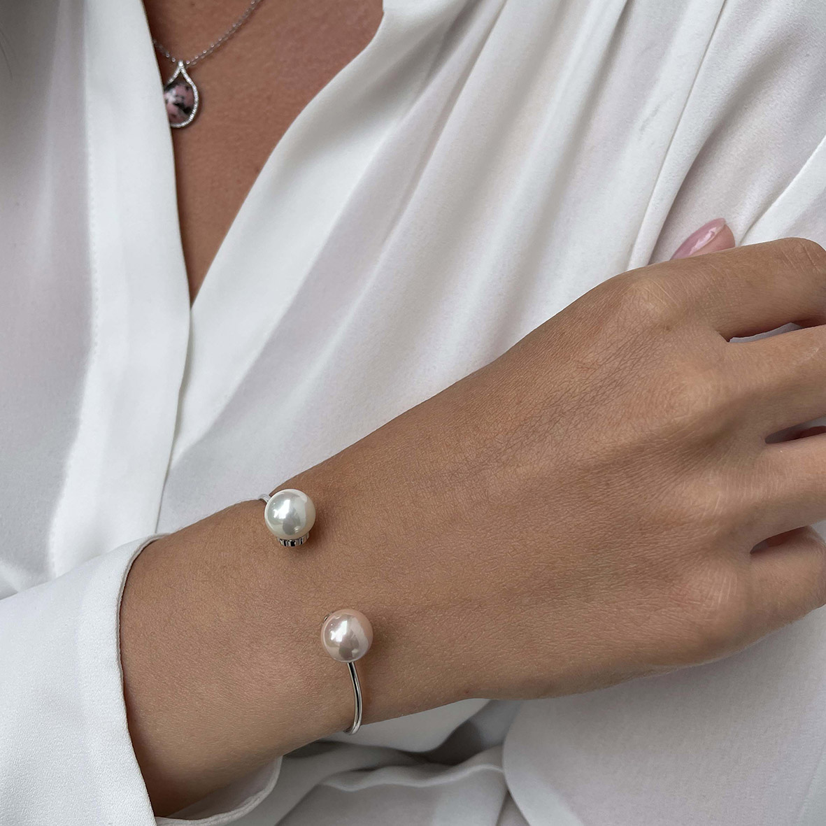 Браслет для женщин из серебра 925 пробы с жемчугами из коллекции Шанель артикул 4340240868-13 от компании KRASNOE