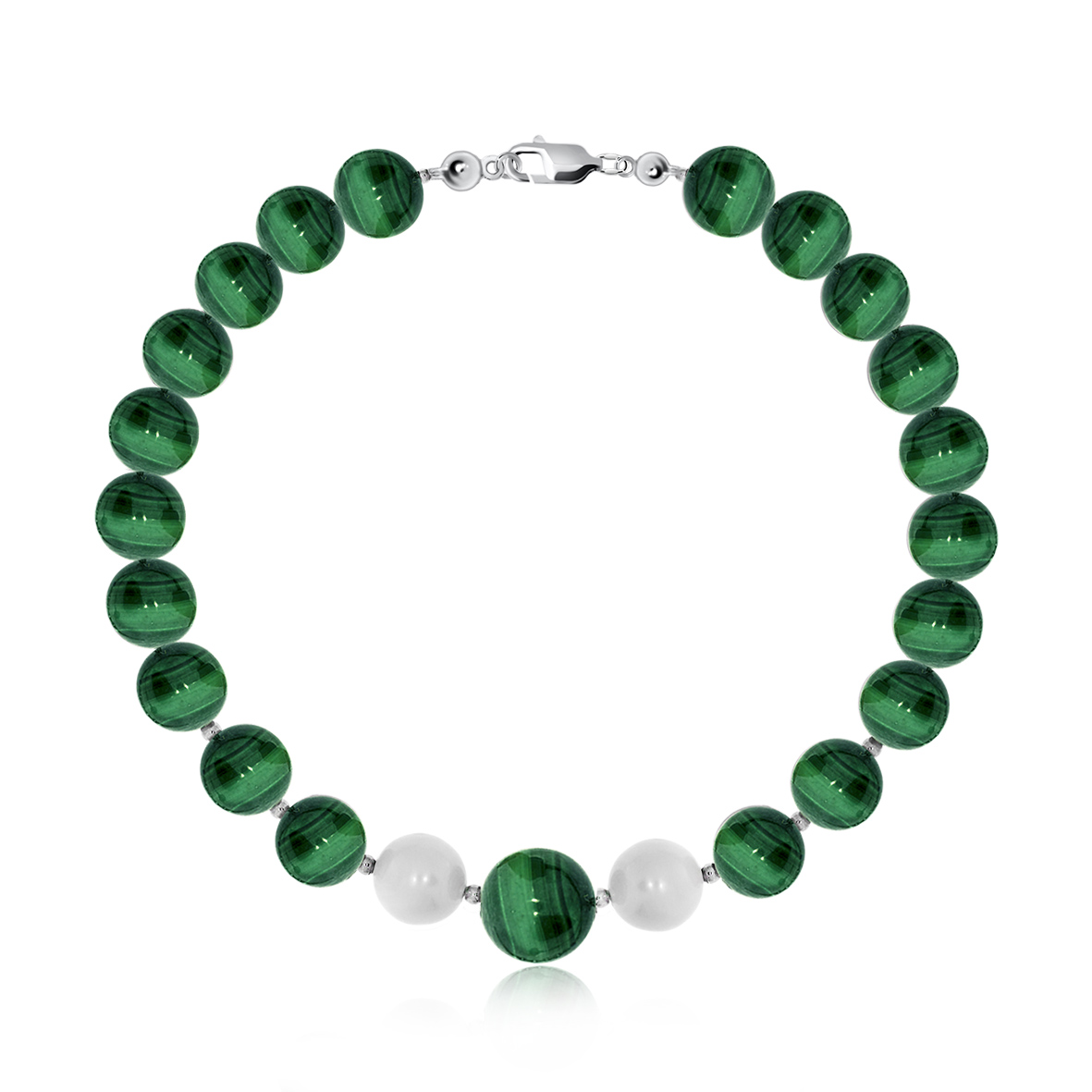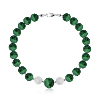 Браслет для женщин из серебра 925 пробы с жемчугами,малахитами из коллекции Летний лед артикул 4340386103-1-18 от компании KRASNOE