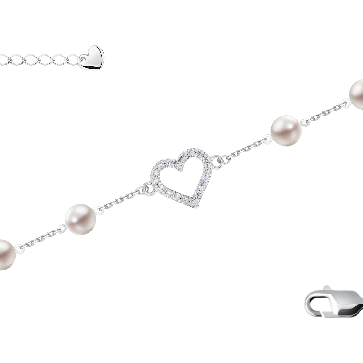 Браслет для женщин из серебра 925 пробы с жемчугами,фианитами из коллекции Love артикул 4340245337л-16-25 от компании KRASNOE