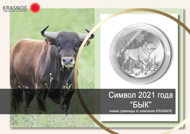 В этом году ювелирная компания «KRASNOE» приготовила для Вас монету с изображением благородного быка на одной стороне и надписью «На удачу» на другой. Именно такое представление символа года выглядит как нельзя лучше, так как символом 2021 года является Белый Металлический Бык.