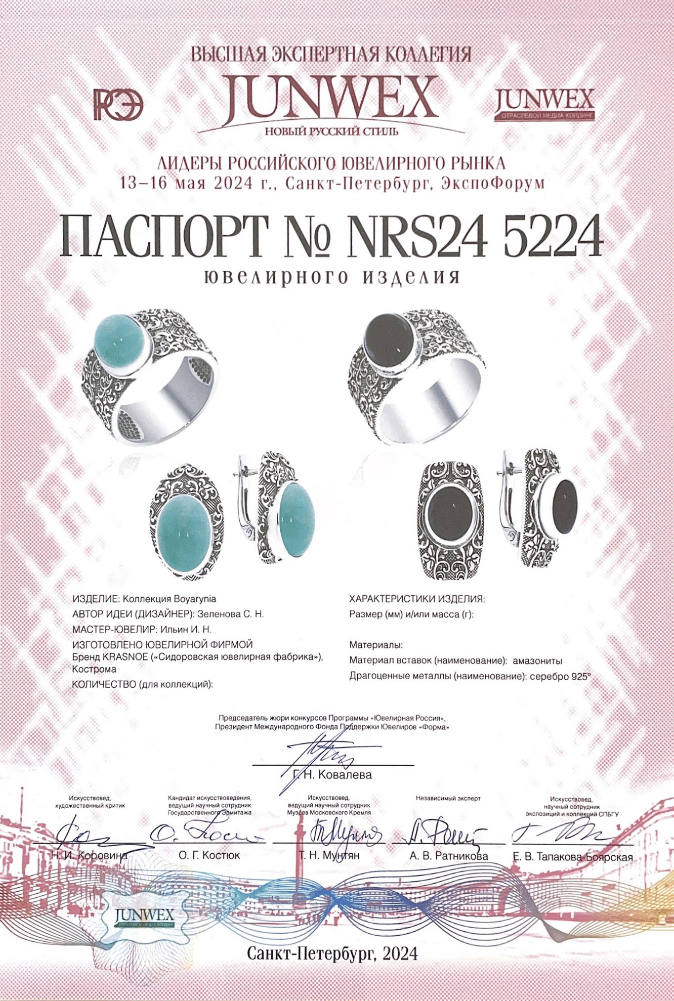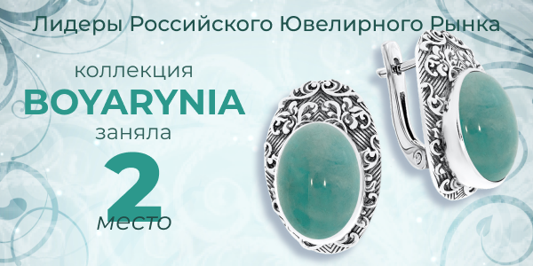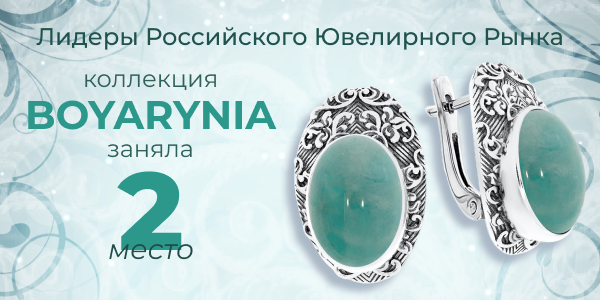Коллекция серебряных украшений с натуральными камнями «Boyarynia» бренда «KRASNOE» заняла 2 место в номинации «этностиль» на XXIII Всероссийском конкурсе ювелиров «Лидеры российского ювелирного рынка».